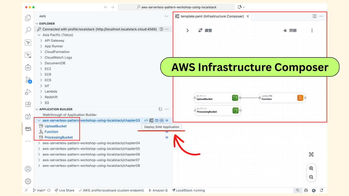 を実行しておく.すると「ローカルバックエンド」で Amazon S3 バケットをデプロイできる👌