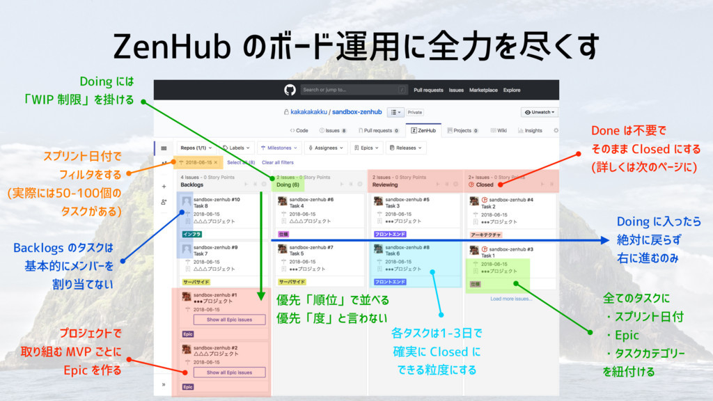 ここ数年,ずっと ZenHub でタスク管理をしていて,すごく気に入っている.今まで,ブログなどで「ZenHub 運用 Tips」を紹介したことはなかったので,今回が初となる.発表資料に書いた通り,個人的なベストプラクティスが多くあり,どんなプロジェクトでも「タスクの流れ」に着目して,管理をすることができると思う.