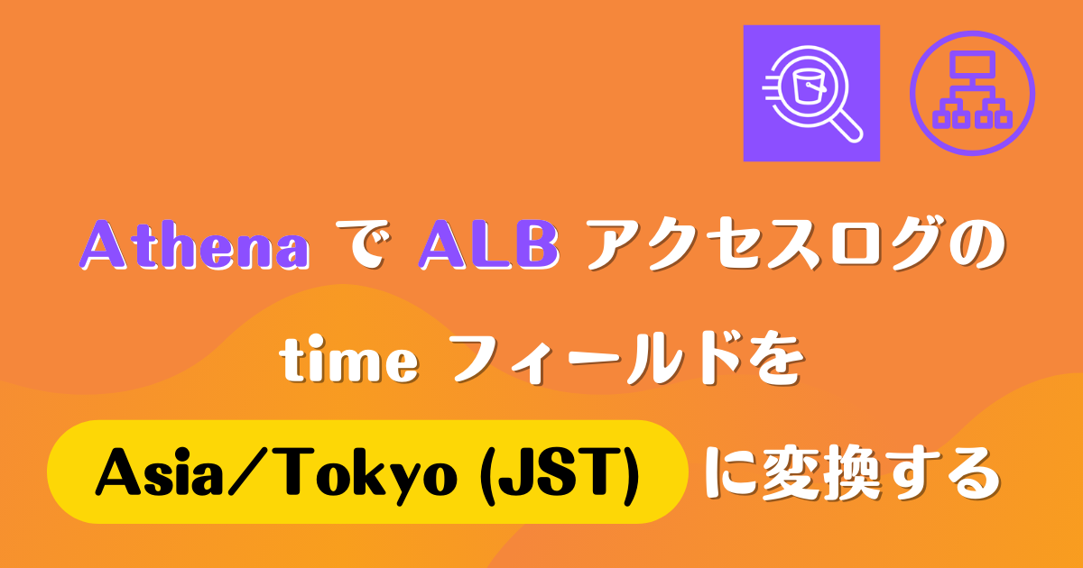 Amazon Athena で Application Load Balancer (ALB) のアクセスログを検索するときにタイムスタンプ time のタイムゾーンは UTC になっている💡検索するときに JST に変換したい❗️と思う場面があって,最近クエリを作っていたため,今後すぐに再利用できるようにクエリサンプルをメモしておこうと思う \( 'ω')/